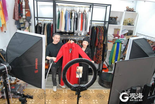 Clothing shop owners in Jimo boost sales through livestreaming. [Photo/guanhai.com.cn]