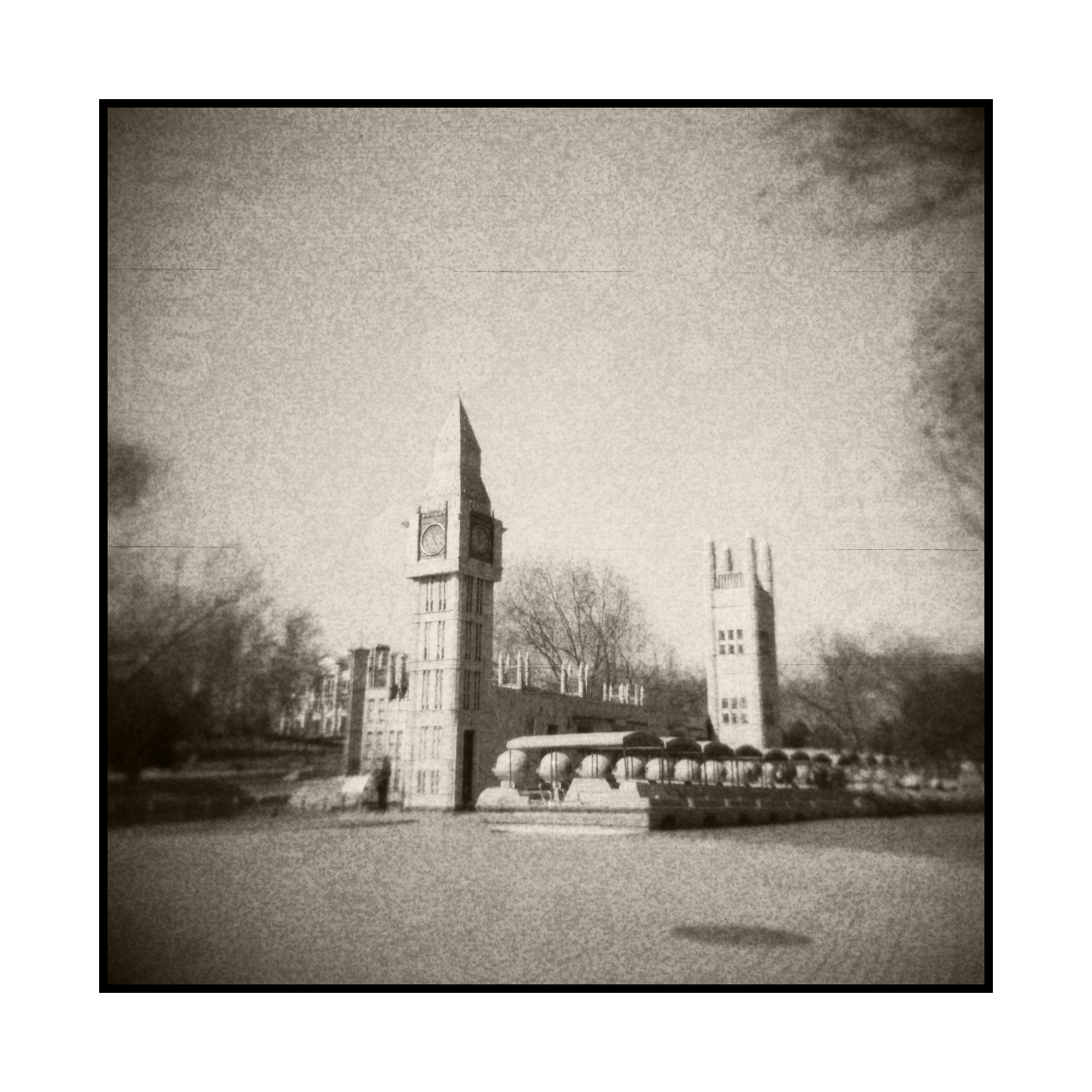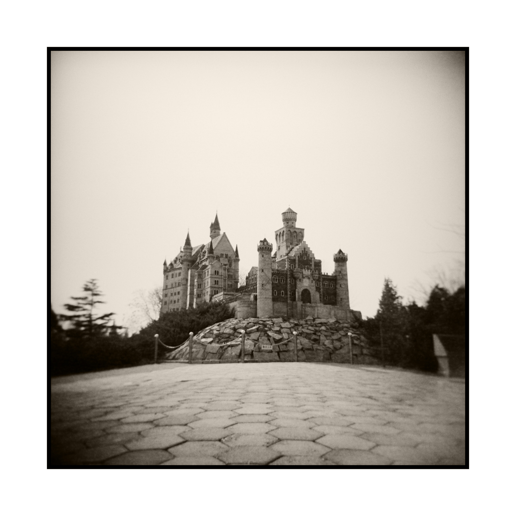 The photographer used B&W film to shoot scenes of the World Park in Beijing, a tourist site featuring reproductions of various historical sites from around the world.