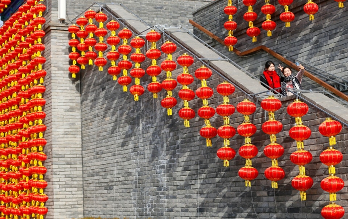 Jimo ancient city, a popular scenic spot in Qingdao, Shandong province, has been spruced up with festive decorations to welcome the upcoming Chinese New Year.[Photo/dzng.com]