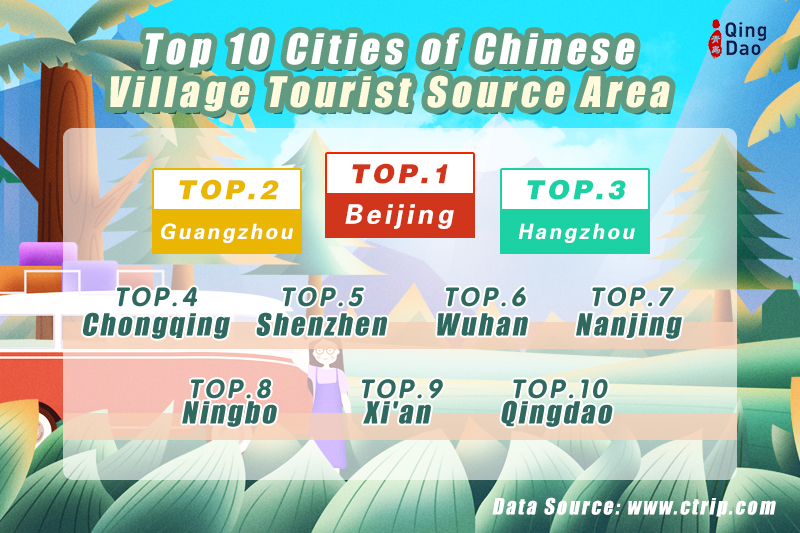 The top 10 cities of village tourism source area in Qingming Festival are Beijing, Guangzhou, Hangzhou, Chongqing, Shenzhen, Wuhan, Nanjing, Ningbo, Xi'an and Qingdao.