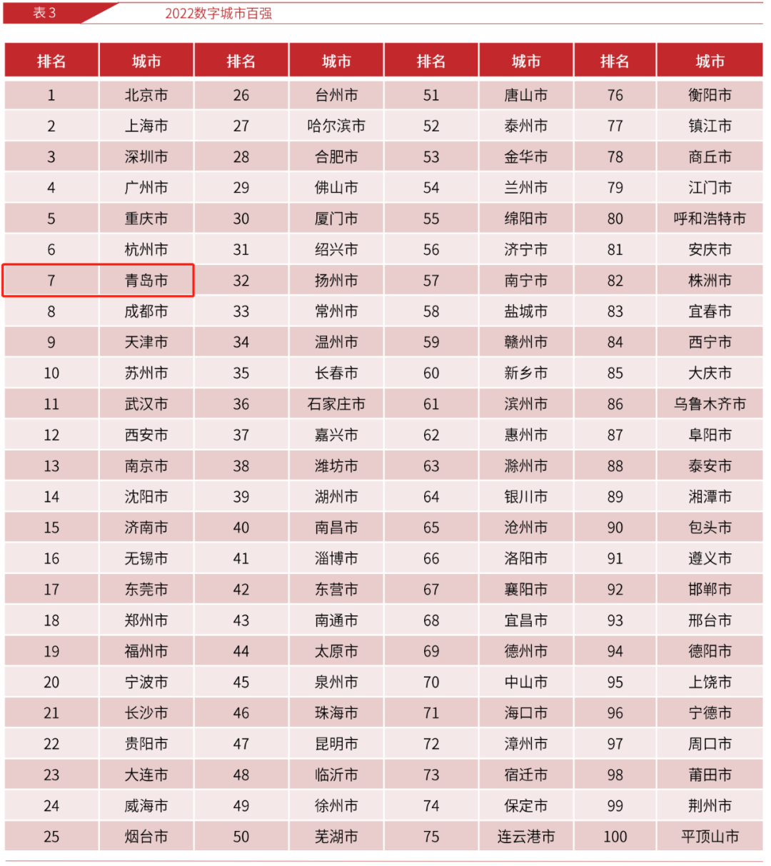 On November 8, the 2022 China Digital City Competitiveness Research Report focused on the construction content of urban digital transformation and development, evaluated from six aspects: information foundation, urban governance, livelihood services, industrial economy, technological innovation, and low-carbon development, and formed the "2022 Top 100 Digital Cities" list.