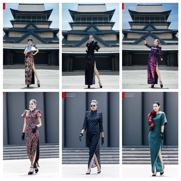 This time, Hu launched a very versatile cheongsam design which combines the gentle silhouette of traditional cheongsam and Western dinner dress. It can be worn in three different ways.