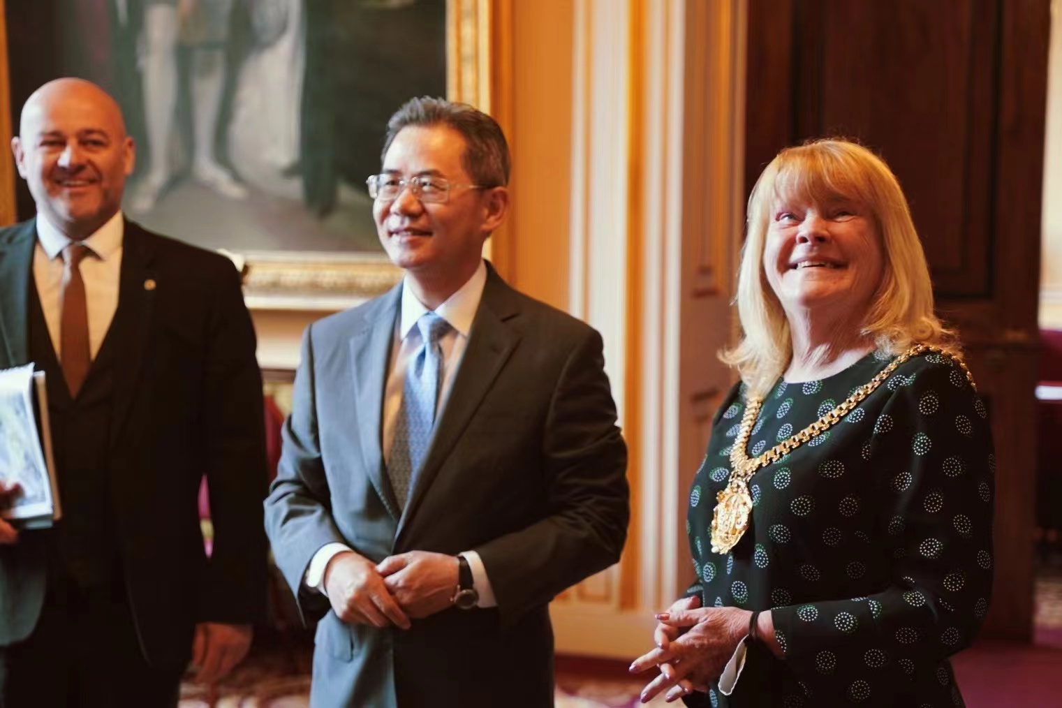 The envoy’s first formal visit outside London since taking office signaled closer city-to-city cooperation between China and the UK, as the nations marked 50th years of ambassadorial diplomatic relations.