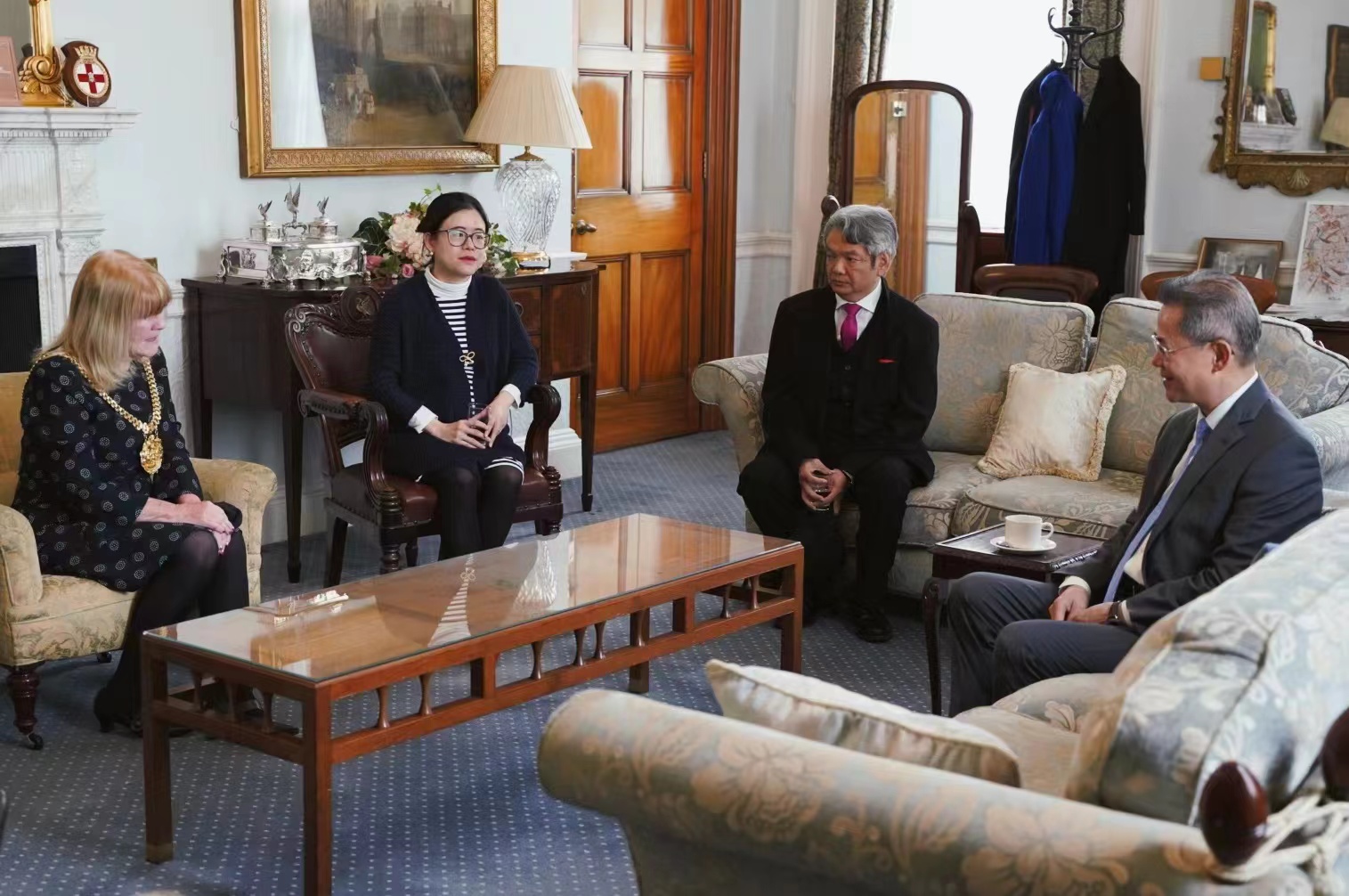 China’s ambassador to the UK, Zheng Zeguang, met with Liverpool Lord Mayor Mary Rasmussen in Liverpool Town Hall on Monday. Liverpool shares a long-standing sister-city relationship with Shanghai that goes back to 1999, and has established friendship partnerships with the cities of Qingdao, Tianjin, Xi’an, and Kunming.
