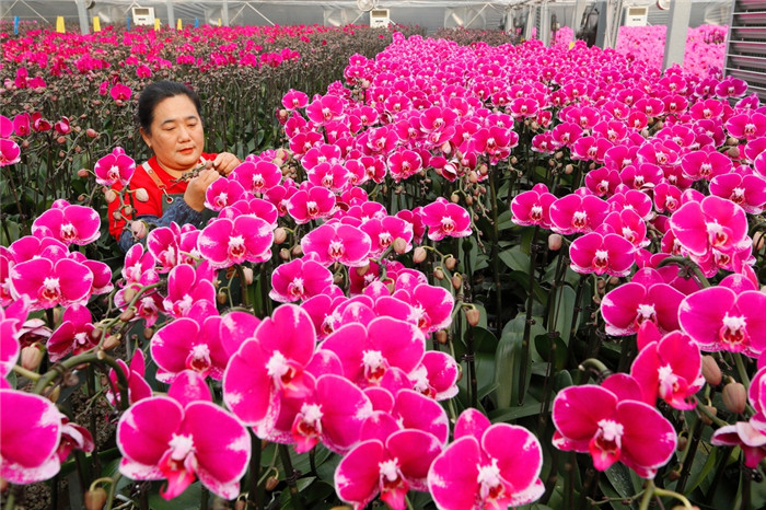 Lingshan sub-district, Qingdao's Jimo, makes significant strides in the cultivation of various specialty flowers like moth orchid. [Photo/IC]