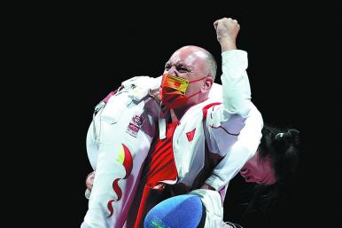 French coach Hugues Obry Carries Sun Yiwen of Team China!